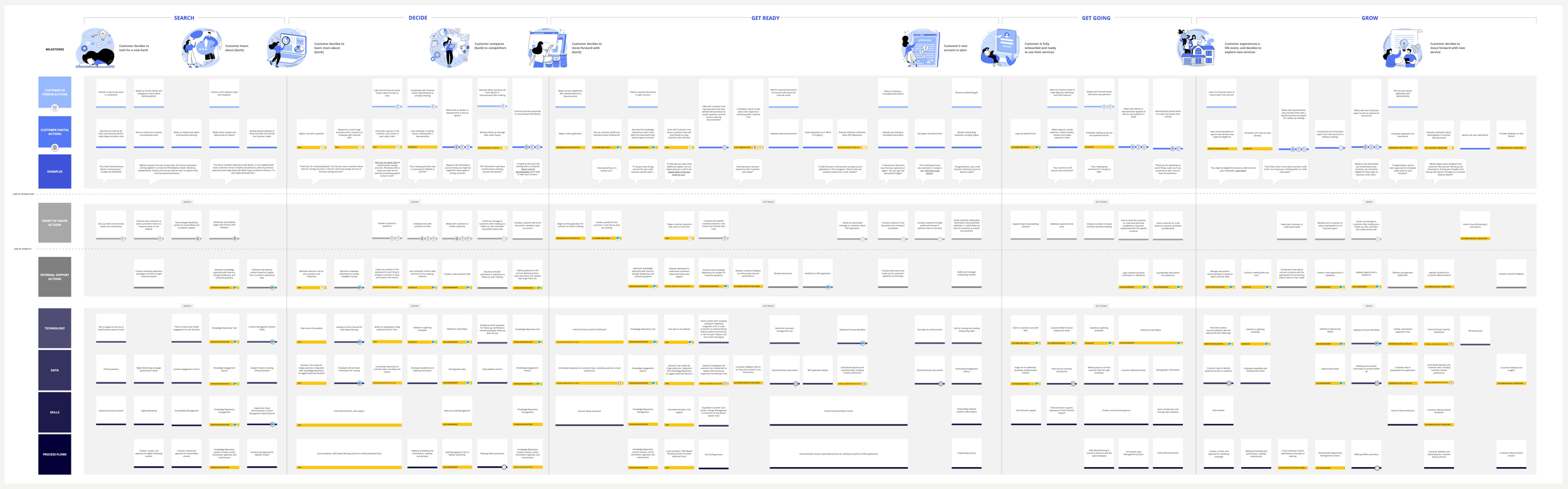 With a strong understanding of the current state, I built upon the ideas uncovered through the interviews and competitive analysis to build an end-to-end blueprint for the new customer experience.